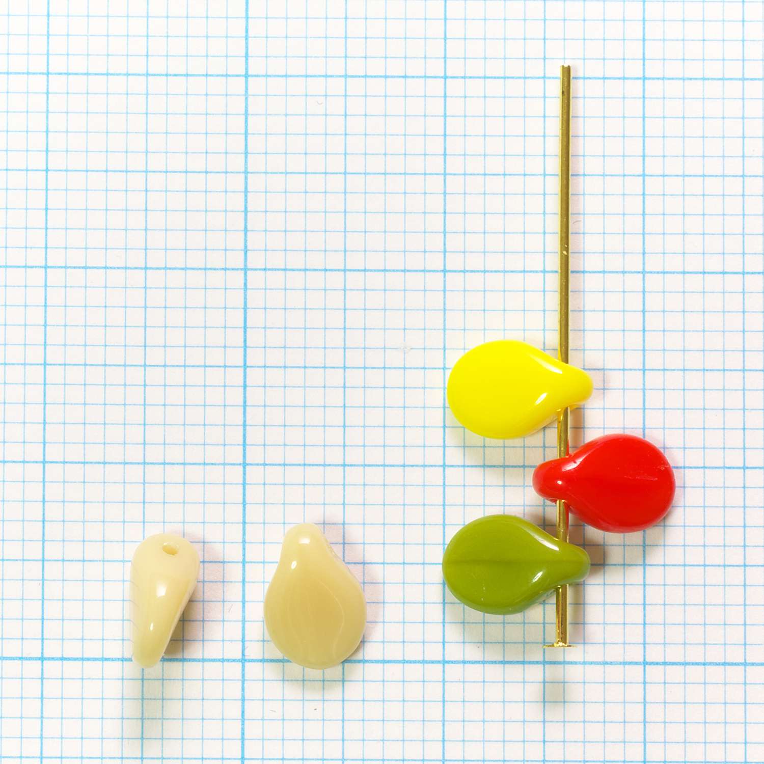 リンゴやナシなどの種、という意味の「ピップ」。しずく形を平たくしたような、花びらにも見える形です。※チェコ製ビーズに共通する特徴として、生産ごとに色合い・大きさ・形に多少の差が出やすいため、掲載されている画像と異なる場合がありますので、予めご了承ください。