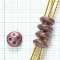 約6mm、厚さ約2.5mm。レンティル(レンズ豆)のような形に、4つ穴があいています。豊富なカラーバリエーションで色合わせを楽しんで。※チェコ製ビーズに共通する特徴として、生産ごとに色合い・大きさ・形に多少の差が出やすいため、掲載されている画像と異なる場合がありますので、予めご了承ください。